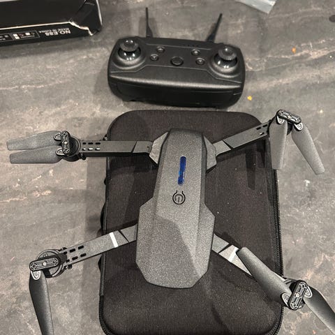 E58 Drone med 4K HD Kamera. Denne sammenleggbare dronen kommer i svart farge og har en rekke funksjoner som inkluderer lang batterilevetid, 360-graders rotasjon og lufttrykksensor. Den er ideell for både nybegynnere og erfarne brukere, og gir mulighet for å ta høyoppløselige bilder og videoer fra luften.