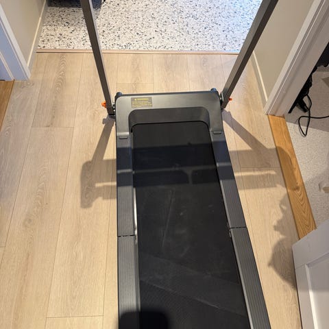 Walking pad. Toppfart på 6 km/t og minimum 0,5 km/t.