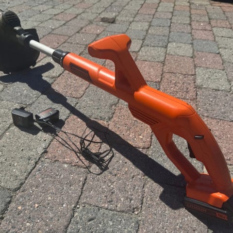 Den fungerer som den skal. Spole og gjenværende trimmertråd medfølger.