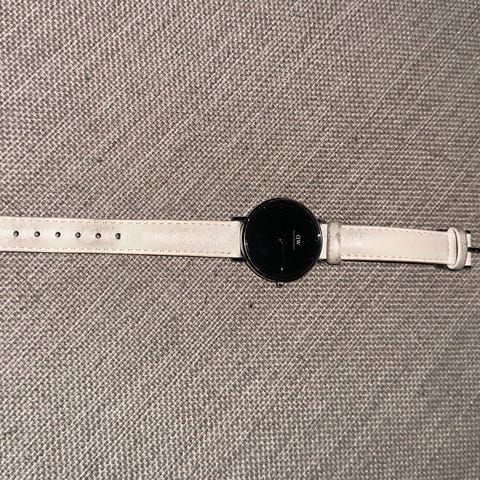 Dam klocka i silver och vitt. Det är ett hår fint märke på kanten av glaset, se foto. Batteriet är slut på den men vid köp så sätter jag i ett nytt.