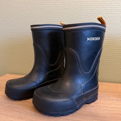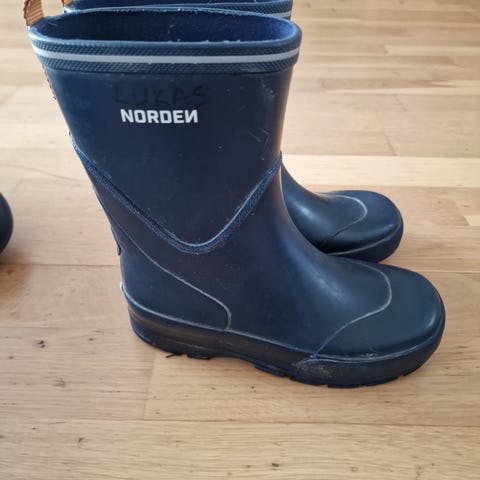 Pent brukte, mørkeblå gummistøvler fra Norden
