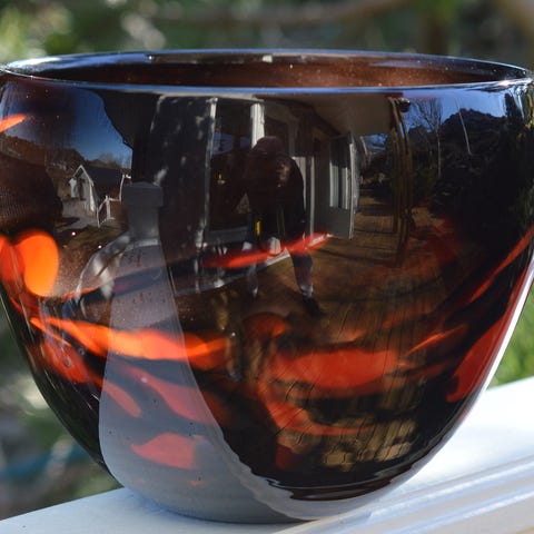 Meget pen stor glassbolle i serien Tonga fra Kosta Boda. Håndlaget dekor. Høyde ca 12 cm, lengde ca 28 cm, bredde ca 18 cm. Selger også telysestaker i samme serie i annen annonse.