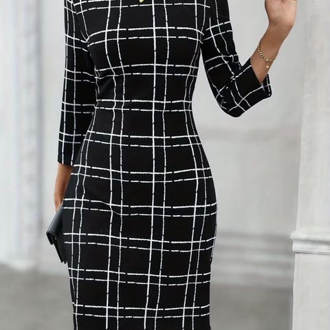Kjolen har et stilig grafisk mønster i svart og hvitt som gir en flatterende effekt. Passer fint både til hverdags og fest.