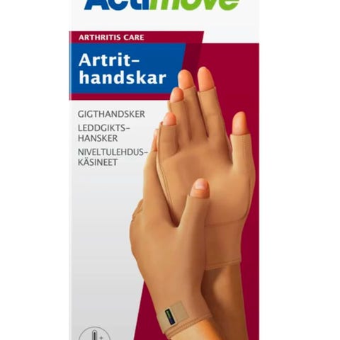 Actimove Arthritis Care artritthansker er fingerløse kompresjonshansker som gir støtte til leddene samtidig som de hjelper til å lindre smerte og øke leddmobilitet gjennom en kombinasjon av varme og kompresjon. Hanskene gir en lett, medisinsk kompresjon og balansert varme for å støtte smertelindring og rehabilitering og redusere hevelse for forbedret finger- og håndmobilitet. Hanskene er laget i mykt, neoprenfritt materiale med god pusteevne og utvendige sømmer. De er behagelige å ha på seg og enkle å holde rene. Produktet egner seg både ved slitasjegikt (artrose) og leddgikt (revmatoid artritt).