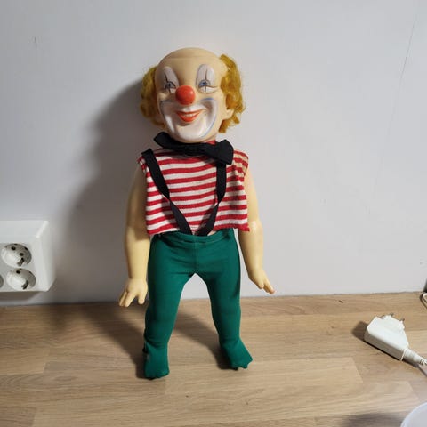 Liten klovn i plastikk fra 80 tallet . Høyde ca 10 cm .