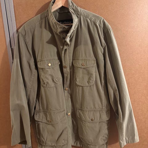 Stilig jakke fra Barbour i str L. Jakken har nesten ikke vært brukt. Selges for 1800,-