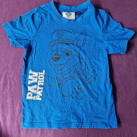 Rød T-shirt med trykk fra Primary. Str. 7/8 år.