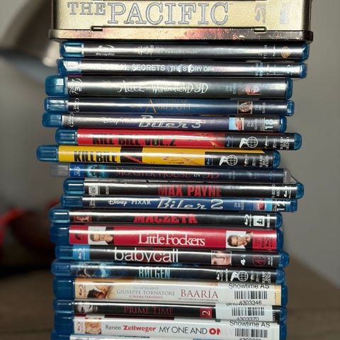 Her er filmer av alle slag. Leiefilm, kjøpefilm, brukt og splitter nytt. Noen er svenske, engelske osv.