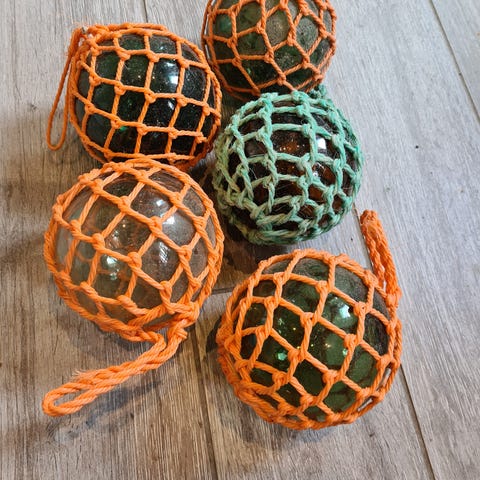 Glasskavler innbundet i lenke. Fin til pynt.