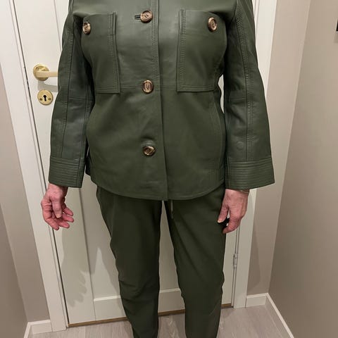 Selger sett med bukse og jakke frå merket Gustav. Stoffet er i tencel og bomull, og er veldig mjukt og behagelig. Jakka er i størrelse 36 og buksa er i størrelse 38.
