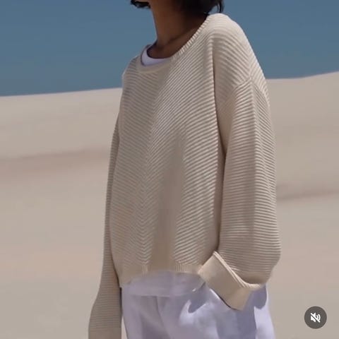 Genseren er i ett litt transparent stoff. Den har 3/4 armlengde med liten oppbrett og brystlomme.