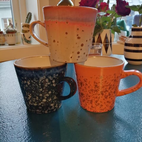 Selger unna to stykk kopper som ikke ble brukt. Kun stått i skap. Rommer 250 ml.
