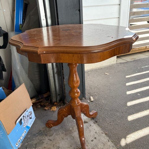 Praktisk og sjarmerende lite bord som har vært brukt til mye. Kan brukes som det er eller pusse litt på det
