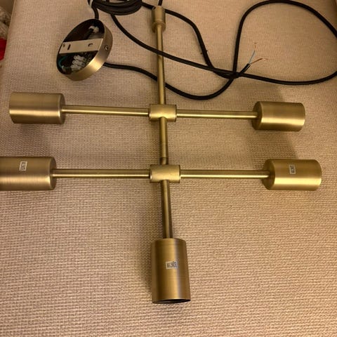 Lengde fra topp takkuppel til topp lampe: 57 cm. Har litt ekstra ledning å ta ut, 10 cm cirka. Selve lampekuppel har en høyde på ca 23 cm.