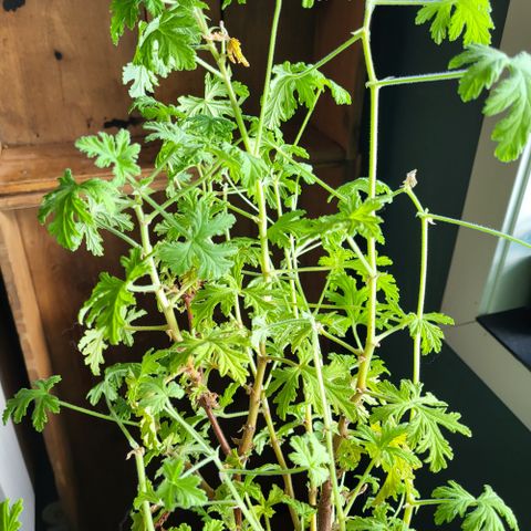 Stiklinger av Rose/sitronpelargonium 40kr, den vanlige sorten.