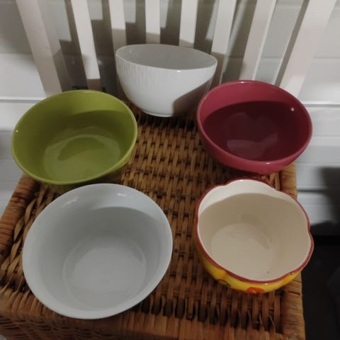 3 stk ubrukte ildfaste fat i nydeleg rødfarge. 2 stk på 15 cm i diameter og 1 på 8,5 cm (målt på toppen. Dei skrår jo litt nedover. Hele og fine. Kr 200 for alle 3👍