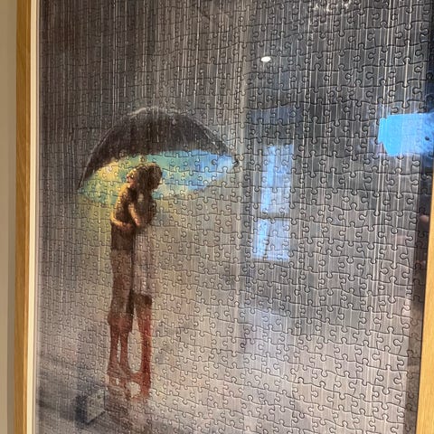 Omsorgsfullt laget og innrammet puslespill-bilde.