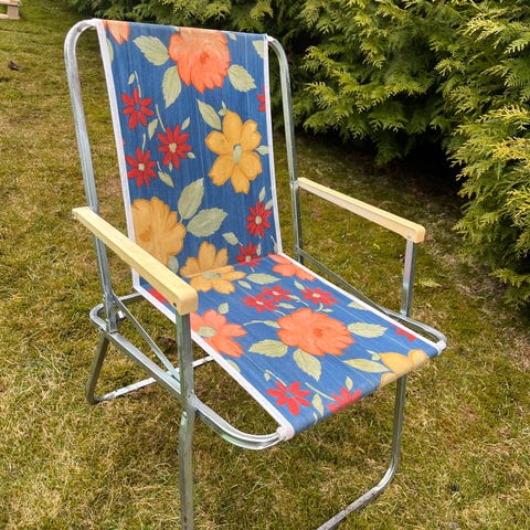 Selger en retro solseng fra 60 tallet. Ingen feil eller mangler på den, men kan trenge en vask og litt smøring. Fungerer som den skal og den kan foldes sammen slik at den tar veldig liten plass…