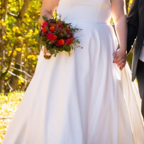 Nydelig brudekjole i stella York selges. Den er kjøpt hos drømmekjolen i Vennesla. Renset 2 dager etter bryllupet. Kjolen er er sydd/tilpasset meg men kan justeres til både en størrelse 34 og en 36. Jeg er 171 cm og har på meg 4 cm heler. Kan sys og opp og ned for å justere til ulike høyder🤩