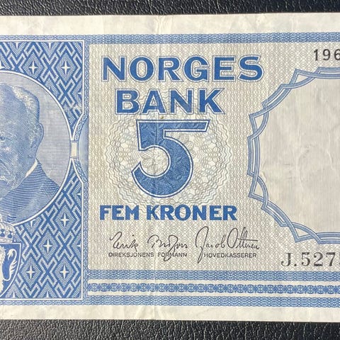 Pent brukt 5 krone seddel fra 1963