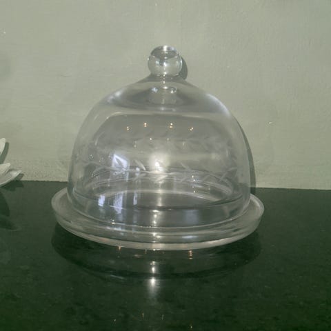 Søkeord : Kakefat, osteklokke, klokke, serveringsfat med lokk
