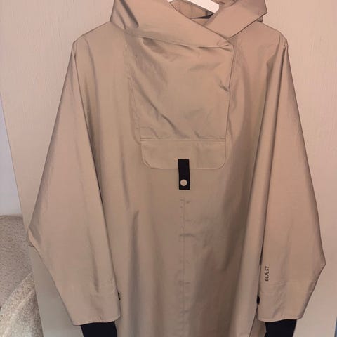 Pent brukt Blæst Bergen regnponcho i en veldig lys gråfarge, nesten hvit. Et par bruksmerker som sikkert kan vaskes bort med nennsom hånd på riktig måte😊 Følger med ekstra refleks-knapp🌸
