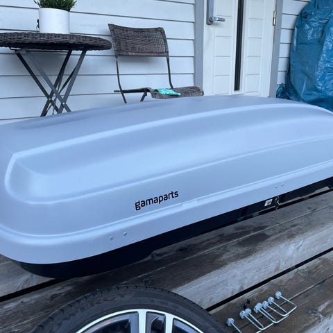 Godt brukt, men ikke på flere år-bare godt oppbevart. Må hentes i Hov. Mål: ca 75x210x30 cm. Maks bredde på takrails må være 1 meter