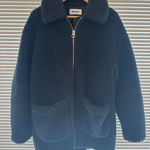 Selger denne blå teddyjakken fra Weekday i oversized fit. Størrelse s.
