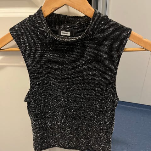 Svart glittertopp fra BikBok i str S selges.