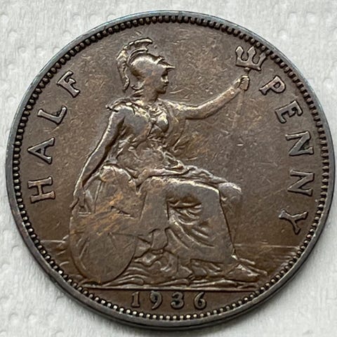 Rn bronse halv penny fra 1931 med George V, er en del av det britiske myntsystemet. Den ble preget i Storbritannia under kong George Vs regjeringstid (1910-1936). Mynten er laget av bronse og har et verditilskudd for samlere.