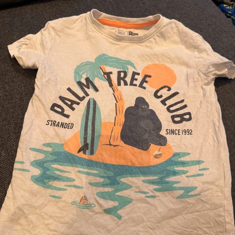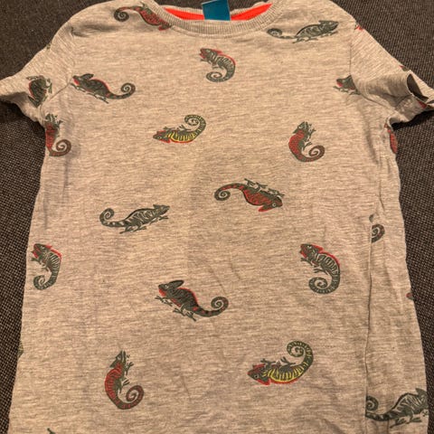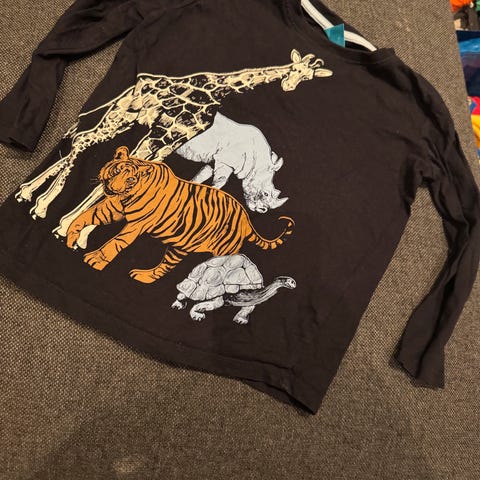 Fint brukt og kul T-skjorte fra little kids i strl 110 selges for kroner 60.