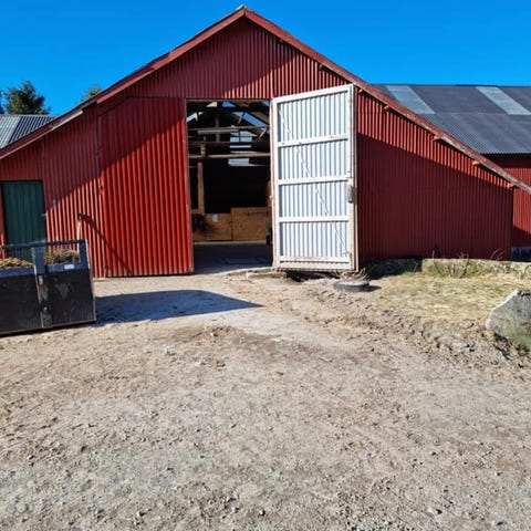 Stor utegang med variert terreng. Oppgruset rundt fôrhekk og hestene har ubegrenset tilgang til tørr liggehall med spon.