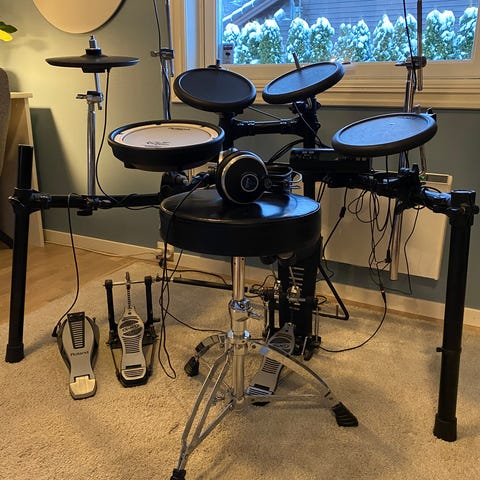Elektronisk trommesett med tre defekte cymbaler selges. Digital Drums 200X Mesh fra Gear4music. Kan brukes som reservedeler evnt repareres.