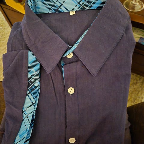 Strykefritt langermet herre skjorte. Lett stoff. 2 ekstra knapper. Armhule til armhule: 72cm. Lengde fra skulder til enden av skjorten: 78 cm. Nyvasket