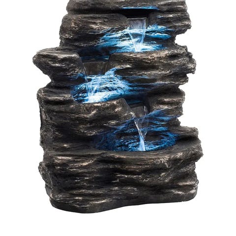 Moderne fontene til utendørs bruk. Fin på terrassen eller andet steder som v en dam. LED lys som lyser fint i vannstrålene i mørket.