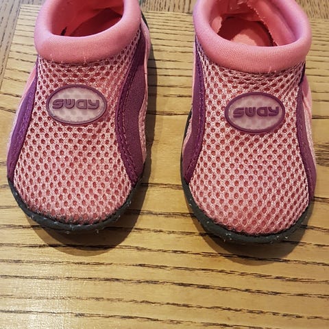 Badeskoene er laget av et hurtigtørkende materiale og tilbyr nær 100 prosent UV-beskyttelse.