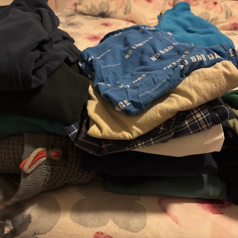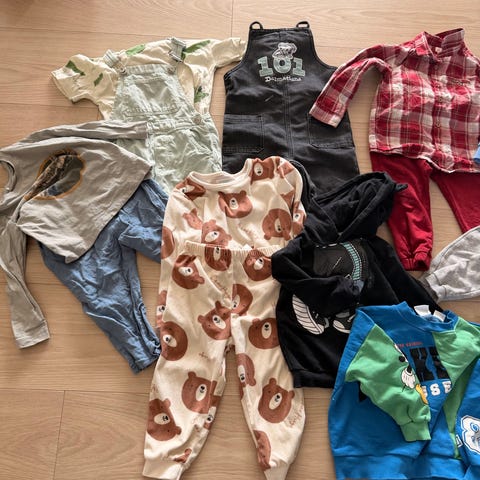 Selger en pakke med klær til gutt i størrelse 92. Alt er pent brukt, noen plagg er brukt mer enn andre, men alt er helt og brukbart.