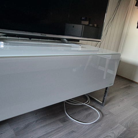 Sort tv bord i temperert glass. En glassplate som kan tas av.