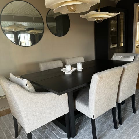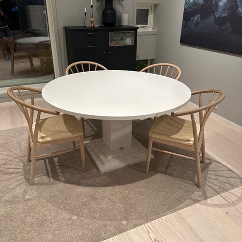 Kjøpt nytt i 2017, null skader. Er noen små fettflekker, men de vises såvidt. Svært god kvalitet på bordet.