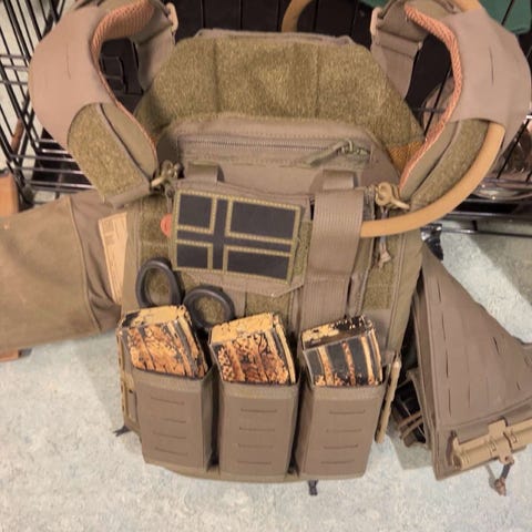 Selger en Outer tactical vest lagd av interceptor body armor for us army. Disse vestene ble brukt av både army og marines under invasjonen av irak i 2003. Ikonisk sak, gjort kjent i serien generation kill.