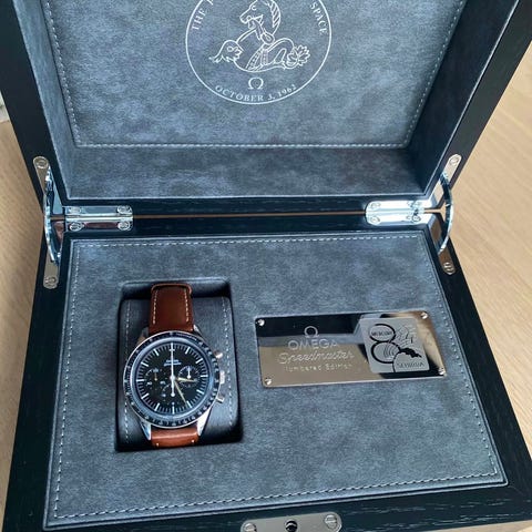 Nyeste tilskudd i Speedmaster familien er et perfekt hint til Omegas klassiske klokker. Skiven viser skala for både telemeter (beregning av avstander) og pulsometer (pulsmåling). I tillegg har den tachymeterskala på bezelring for måling av fart. Klokkekassen er klassisk Speedmaster og inni sitter et helt nytt og egenprodusert urverk med manuelt opptrekk. Verket er selvsagt in-house Omega, både METAS- og COSC-sertifisert.