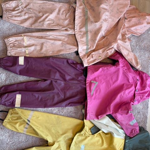Pent brukt ullpakke i str 62, brukt av ett barn i noen måneder. Fra røyk- og dyrefritt hjem. To små hull som jeg kan se, vist på bilde. Den grønne heldressen er i str 60. Den hvite og blå bodyen er i bambus.