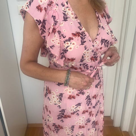 Farge Rosa-pale naive Den er i Viscose. Kjolen har knyting i livet og litt lengre bak enn foran