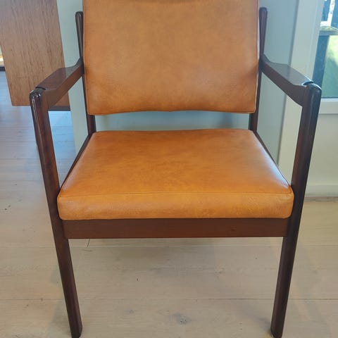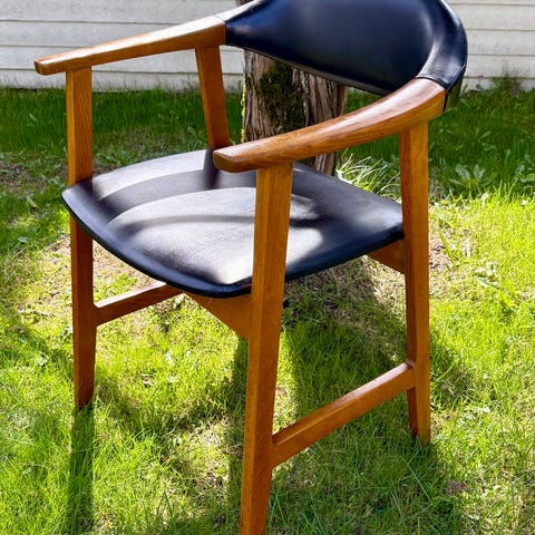 God stol å sitte i, se bilder. Merket under, men jeg klarer ikke å se hvilken designer eller fabrikk