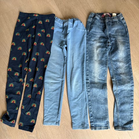 2 stk Kappahl jeans, str 128 (7-8 år) og en joggebukse/kosebukse, str 134/140 (tilsvarer mer str 128, brukt samtidig med jeans str 128) selges samlet.