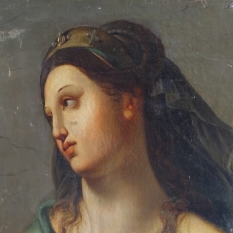 Eldre bilde, dette er ikke malt på lerret, men det er en type glatt overflate med ruglete bakside som er rammet inn. Litt usikker på hva den er laget av. Fin tilstand.