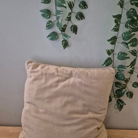 Dunpute str 50x50 cm fra Moltex (100% white duck feathers, filling weight 800 g) med bomullstrekk med treknapper fra Modern House.