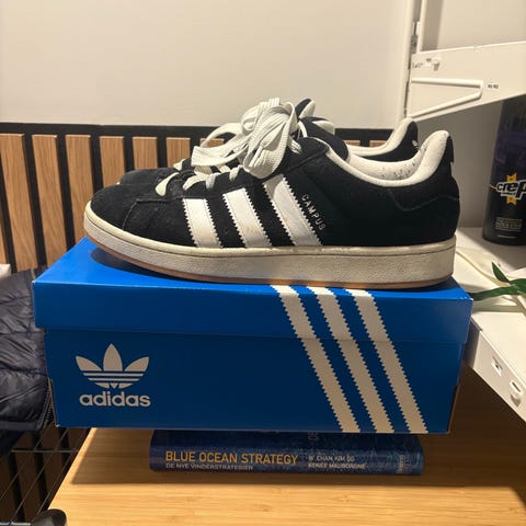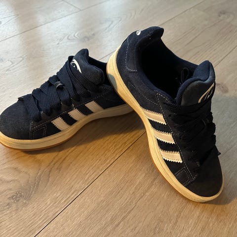 Selger et par Adidas Campus i størrelse 45 1/3. Klassiske sneakers i god kvalitet som passer til både hverdags og fritid.