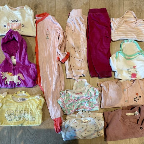 Klespakke Babytøy Pakke Baby Jente Rosa Hello Kitty Rev Skyer Sommerfugler Blomster Striper Prikker Farger