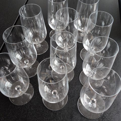 17 stk vin glass med slett , 18 cm høye, må hentes .